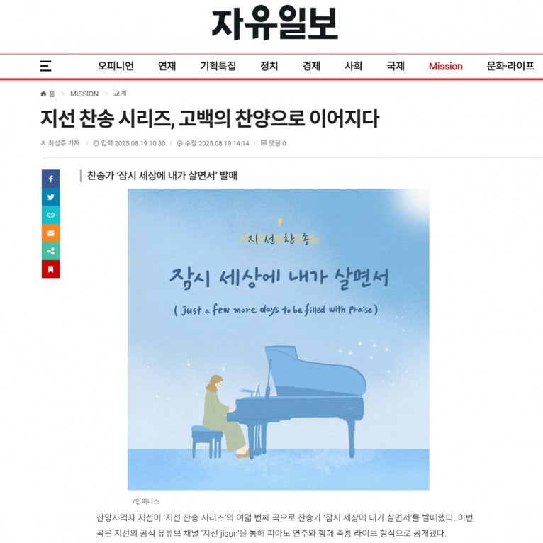 뮤직타임 [기사] 지선 찬송 시리즈, 고백의 찬양으로 이어지다(자유일보)