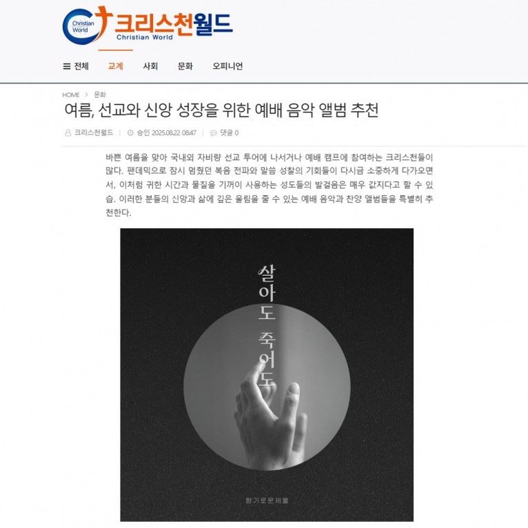 [기획기사] 여름, 선교와 신앙 성장을 위한 예배 음악 앨범 추천(크리스천월드)