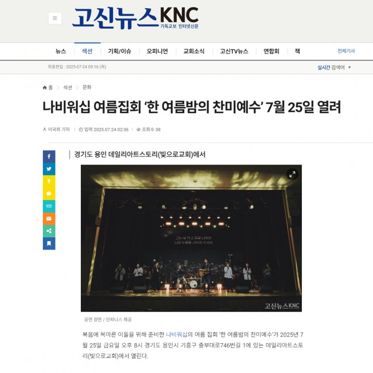 [기사] 나비워십 여름집회 ‘한 여름밤의 찬미예수’ 7월 25일 열려(고신뉴스 KNC)
