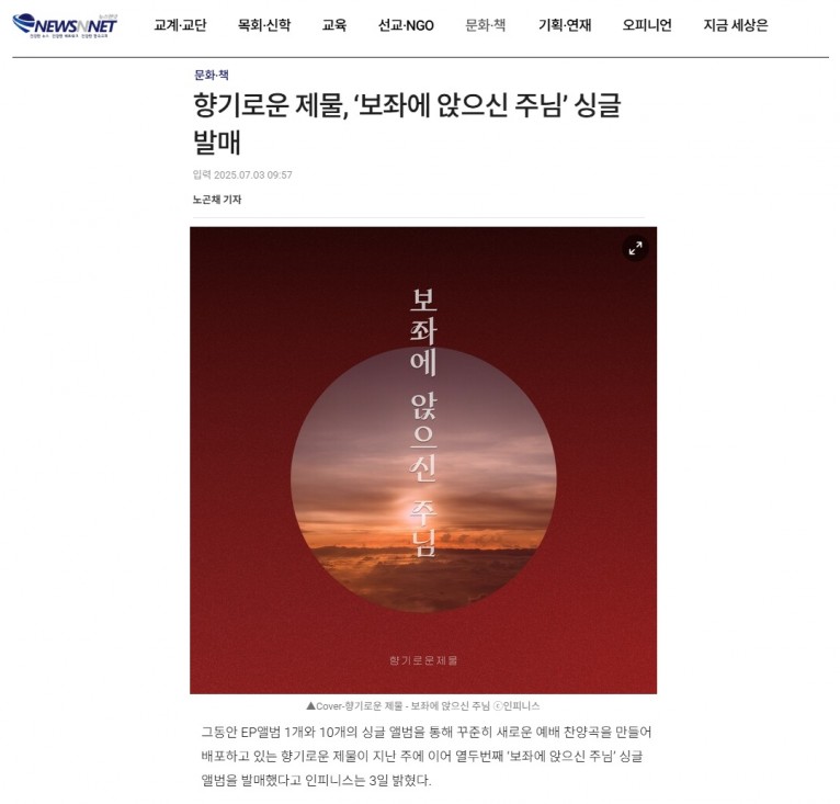 [기사] 향기로운 제물, ‘보좌에 앉으신 주님’ 싱글 발매(뉴스앤넷)