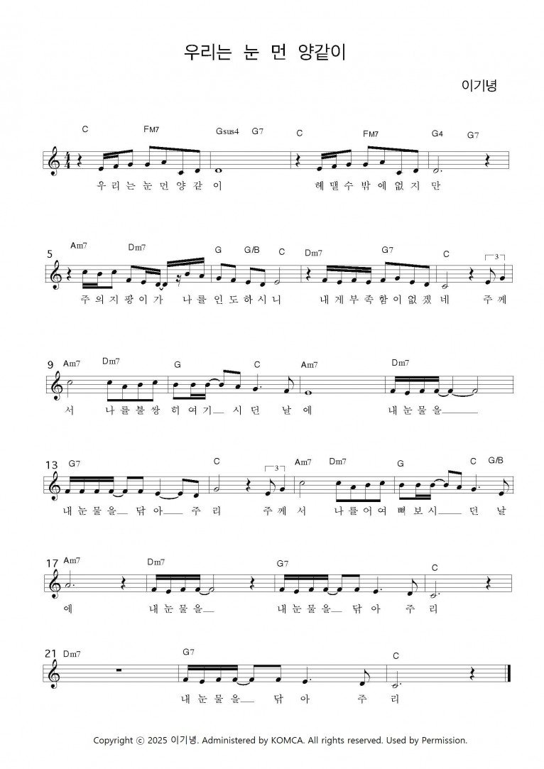 뮤직타임 [악보] 우리는 눈 먼 양같이 - 창조의 목적 (잠잠히 주를 바랄 때)