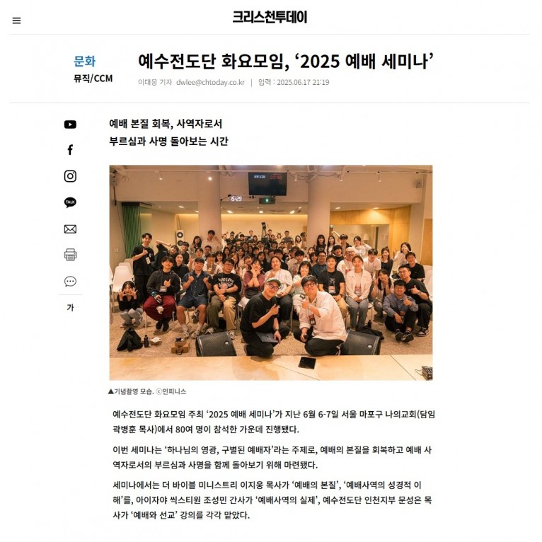 뮤직타임 [기사] 예수전도단 화요모임, ‘2025 예배 세미나’(크리스천투데이)