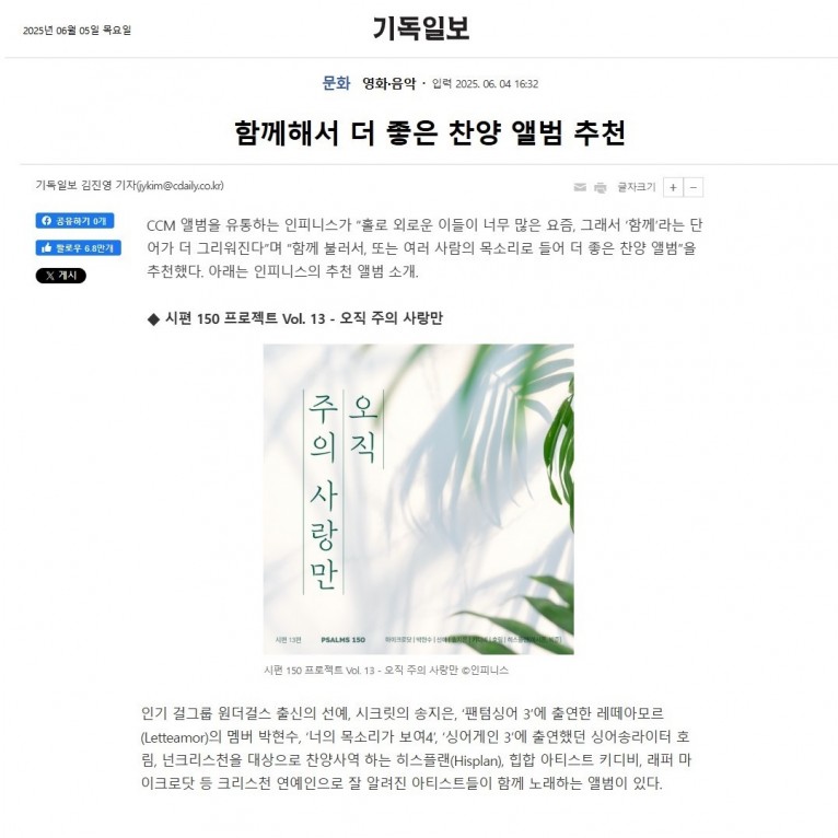 [기획기사] 함께해서 더 좋은 찬양 앨범 추천(기독일보)