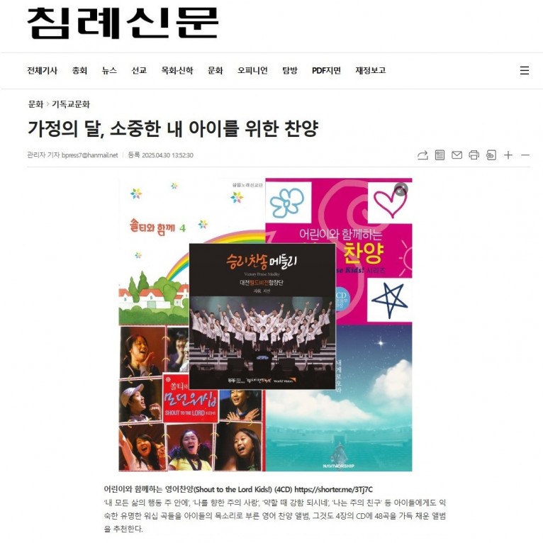 뮤직타임 [기획기사] 가정의 달, 소중한 내 아이를 위한 찬양(침례신문사)