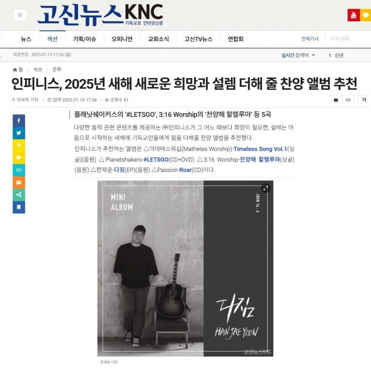 뮤직타임 [기획기사] 2025년 새해 새로운 희망과 설렘 더해 줄 찬양 앨범 추천(고신뉴스 KNC)
