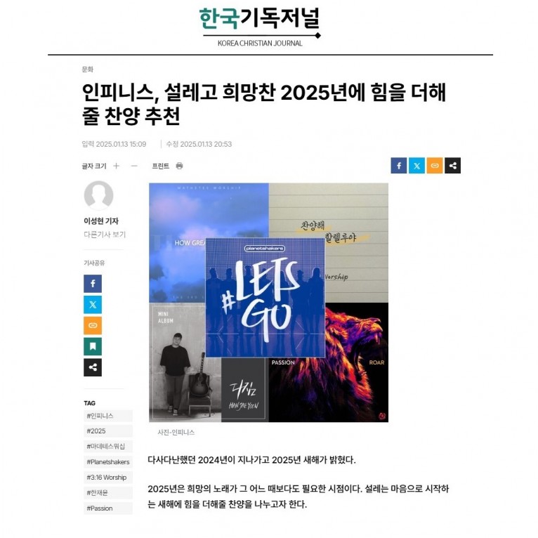 [기획기사] 설레고 희망찬 2025년에 힘을 더해 줄 찬양 추천(한국기독저널)