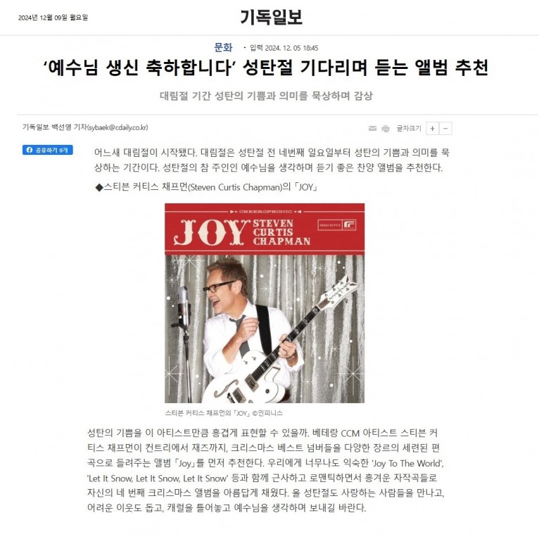 [기획기사] ‘예수님 생신 축하합니다’ 성탄절 기다리며 듣는 앨범 추천(기독일보)