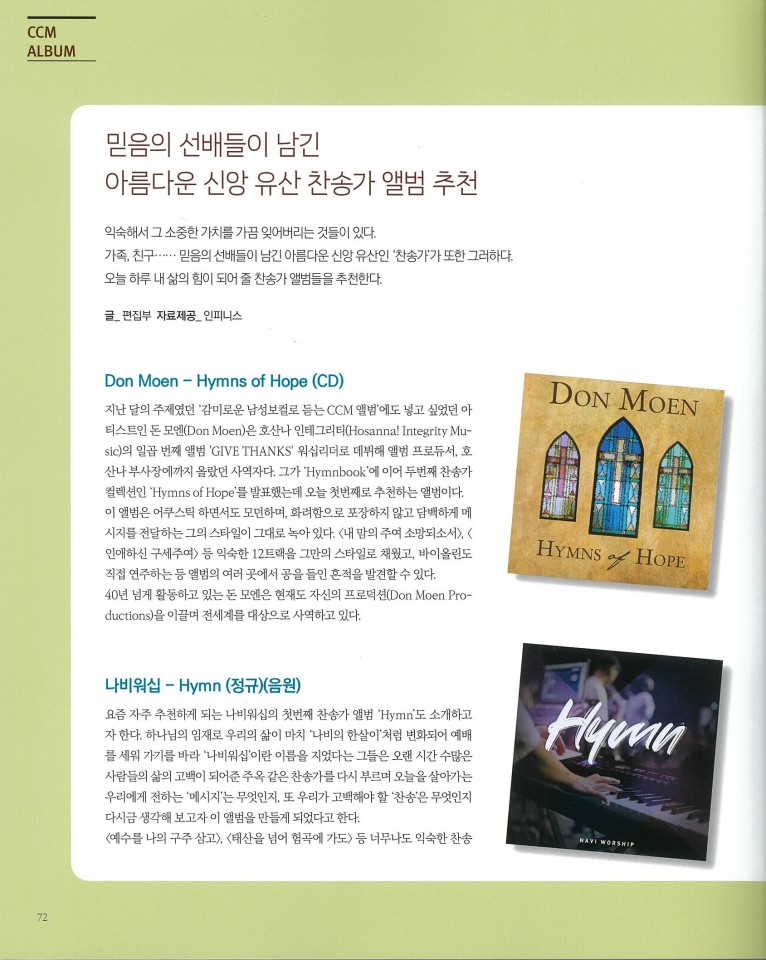 [잡지] 믿음의 선배들이 남긴 아름다운 신앙 유산 찬송가 앨범 추천(월간 Church Media 2024.10월호)