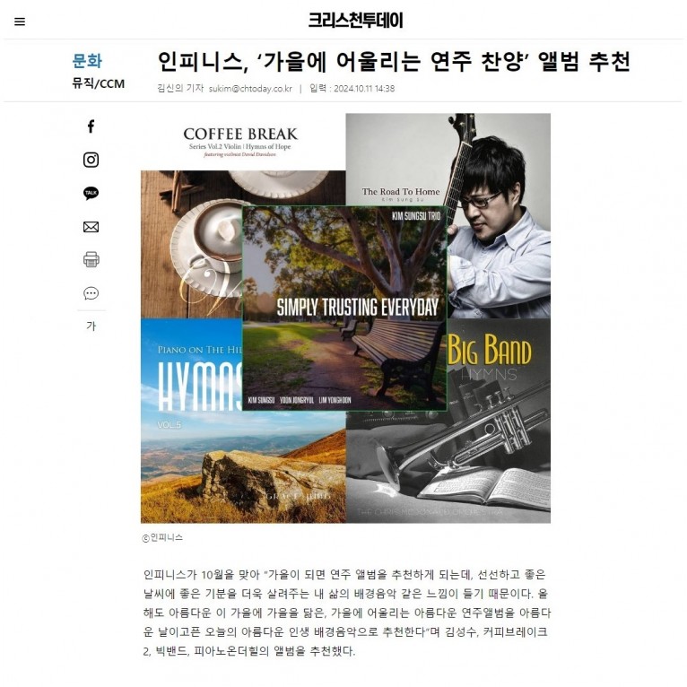 뮤직타임 [기획기사] ‘가을에 어울리는 연주 찬양’ 앨범 추천(크리스천투데이)