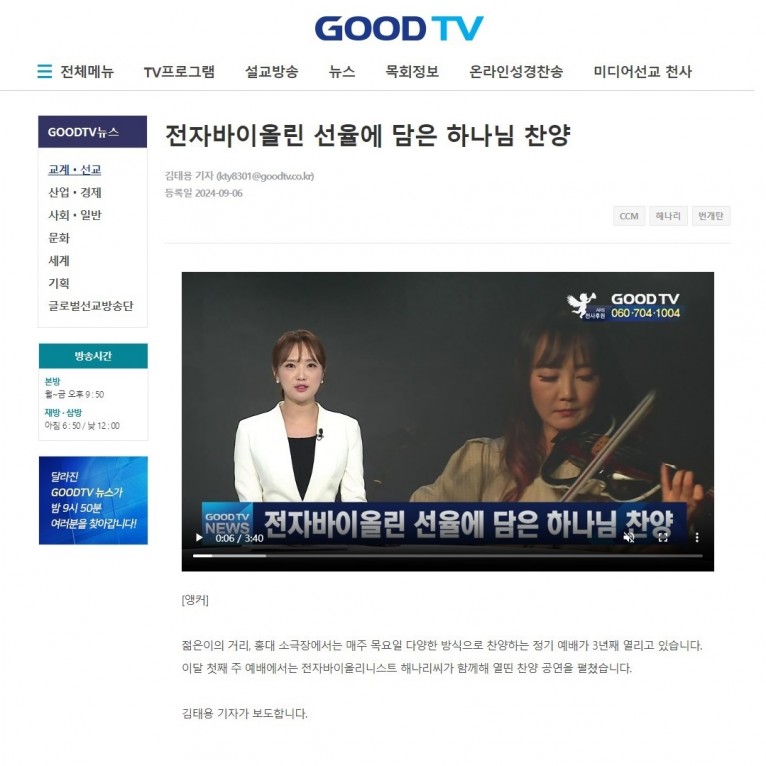 [방송] 전자바이올린 선율에 담은 하나님 찬양(기독교복음방송 GOODTV)