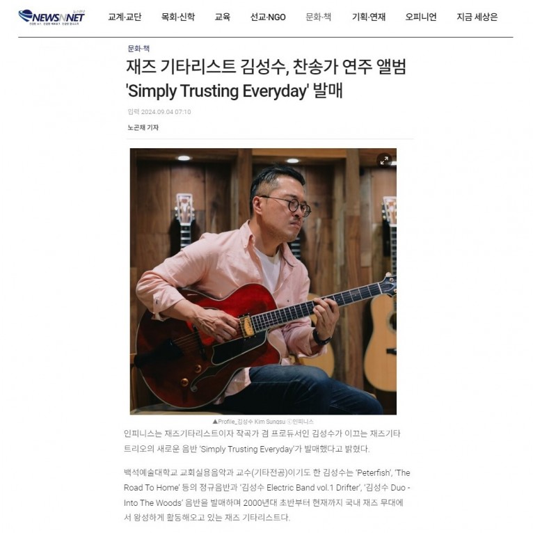 [기사] 재즈 기타리스트 김성수, 찬송가 연주 앨범 'Simply Trusting Everyday' 발매(뉴스앤넷)