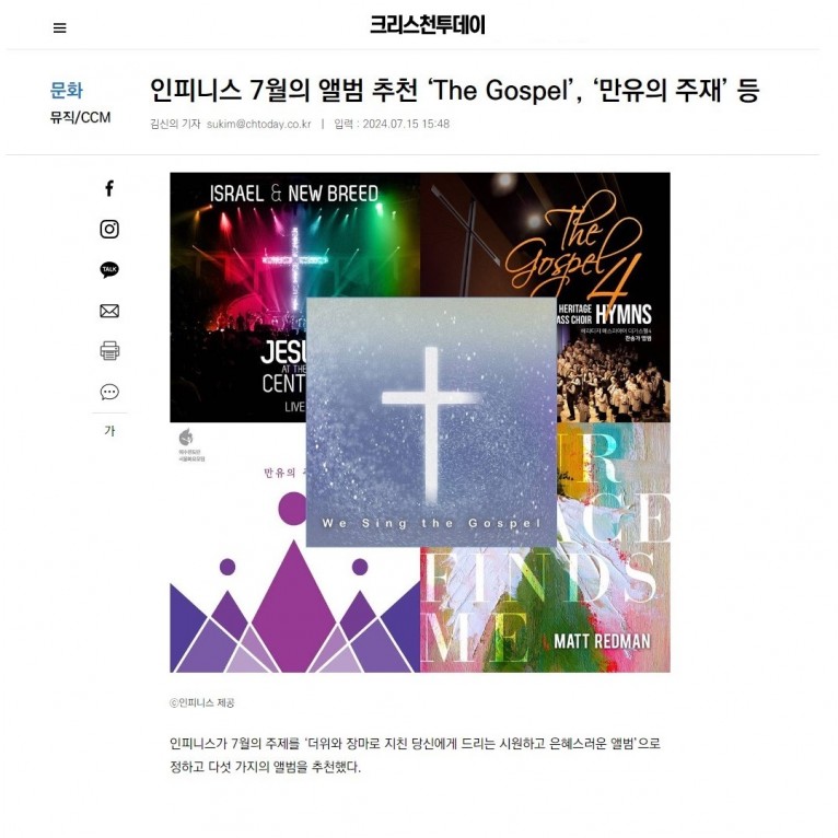 뮤직타임 [기획기사] 7월의 앨범 추천 ‘The Gospel’, ‘만유의 주재’ 등(크리스천투데이)