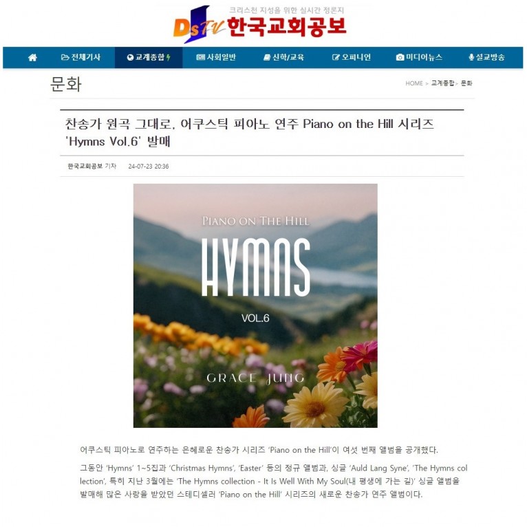 [기사] 찬송가 원곡 그대로, 어쿠스틱 피아노 연주 Piano on the Hill 시리즈 'Hymns Vol.6' 발매(한국교회공보)
