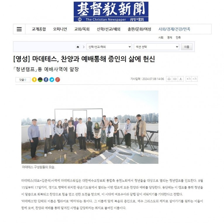 [기사_인터뷰] 마데테스, 찬양과 예배통해 증인의 삶에 헌신(기독교신문)