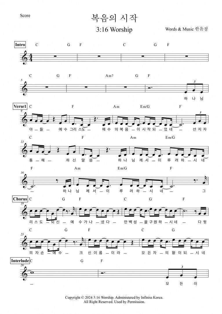 [악보 & MV] 복음의 시작 - 3:16 Worship