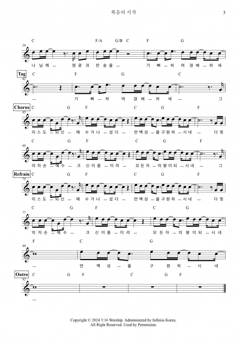 악보출처 https://shorter.me/5wRsm (3:16 Worship 구글 드라이브)
