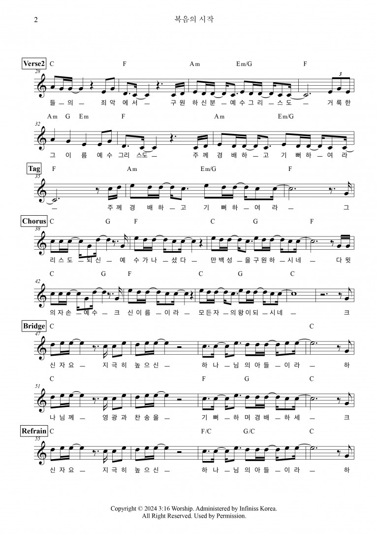 뮤직타임 [악보 & MV] 복음의 시작 - 3:16 Worship
