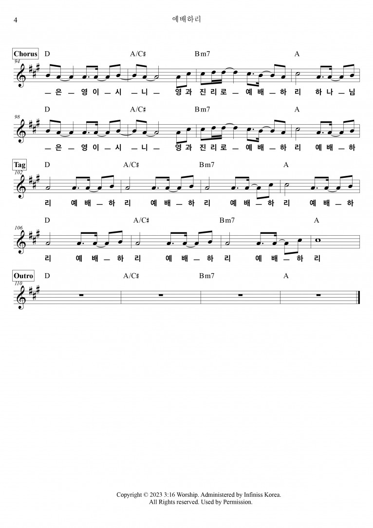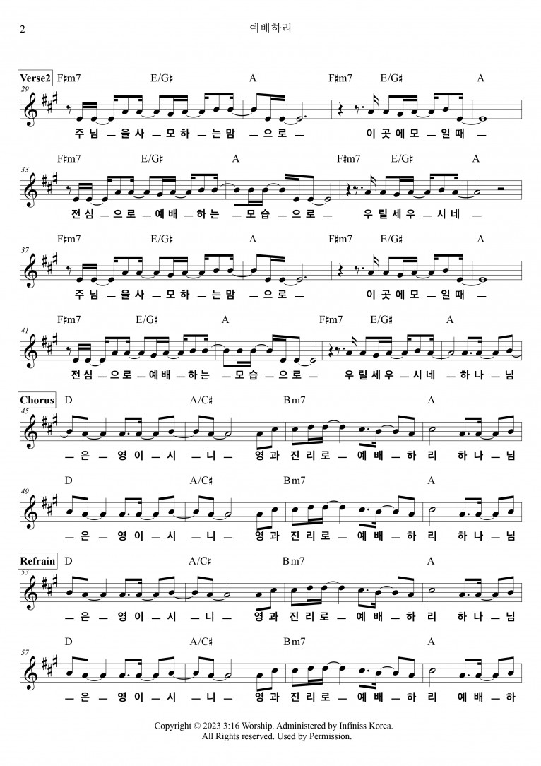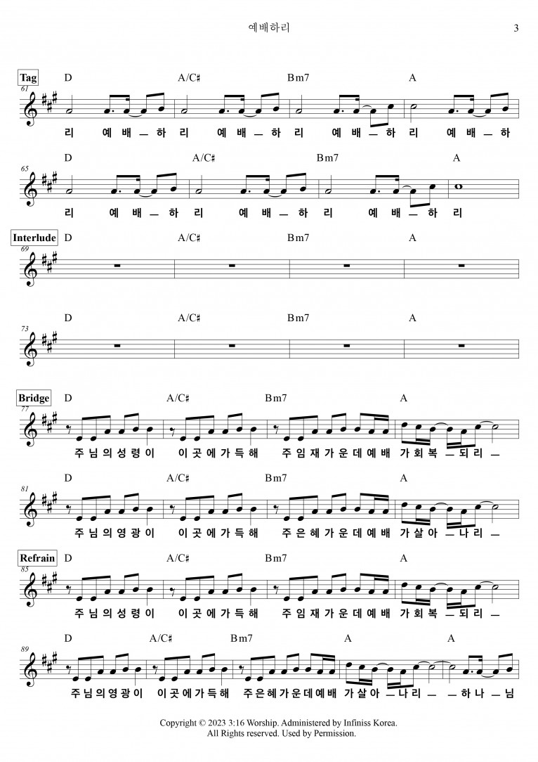 악보출처 https://shorter.me/5wRsm (3:16 Worship 구글 드라이브)