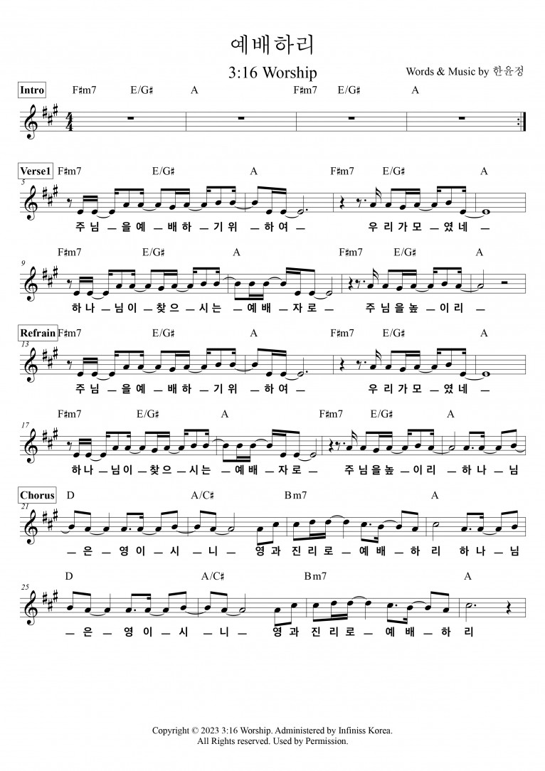 [악보 & MV] 예배하리 - 3:16 Worship