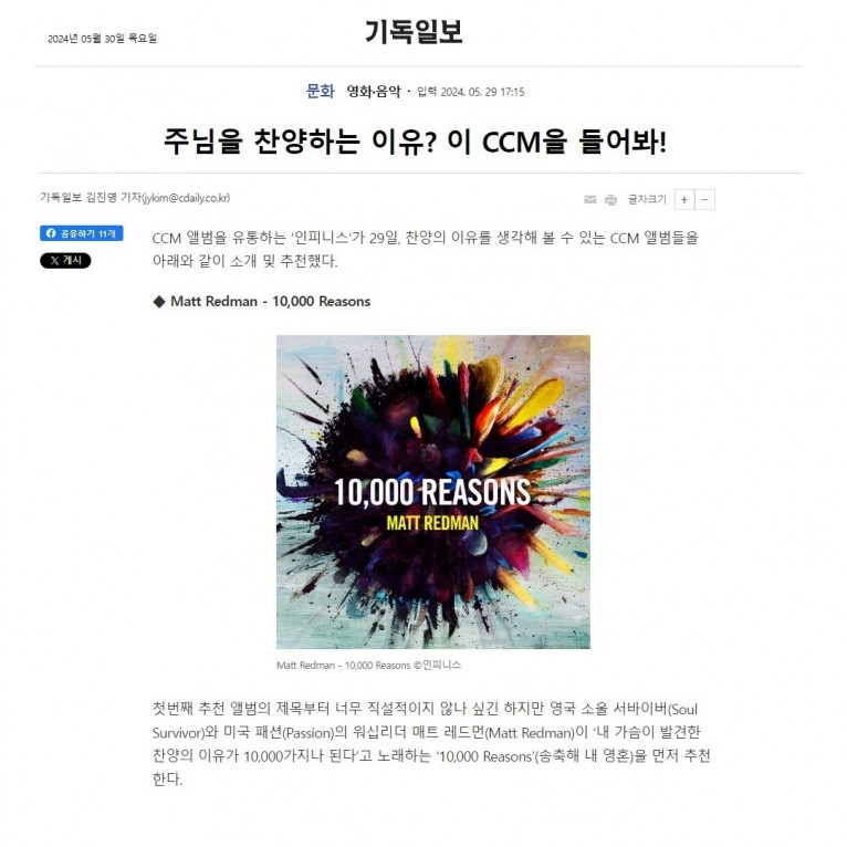 [기획기사] 주님을 찬양하는 이유? 이 CCM을 들어봐!(기독일보)
