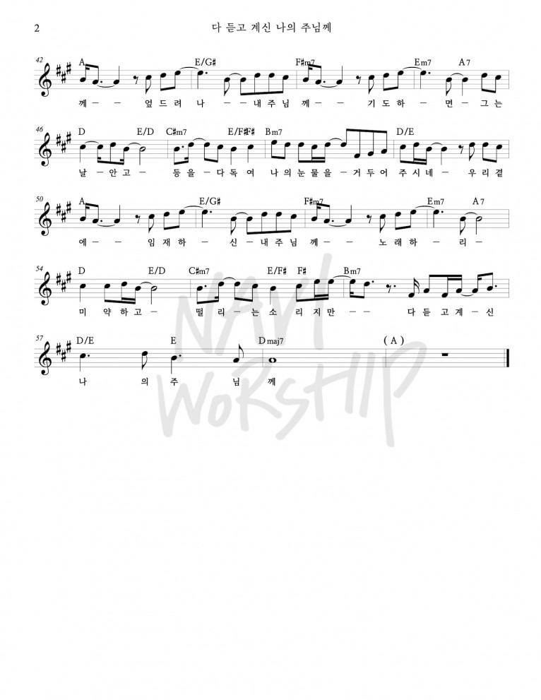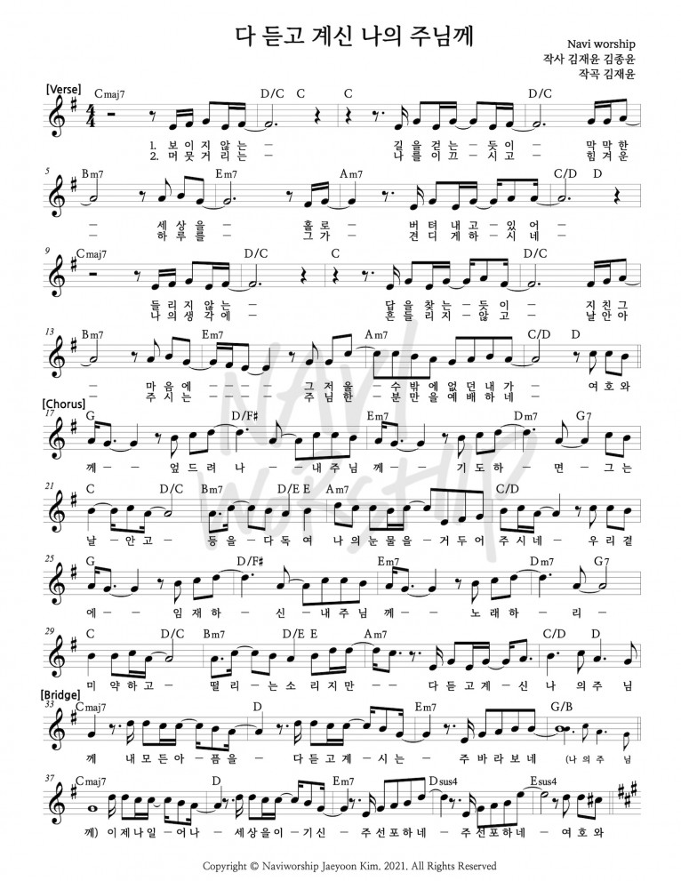 뮤직타임 [악보] 다 듣고 계신 나의 주님께 - 나비워십
