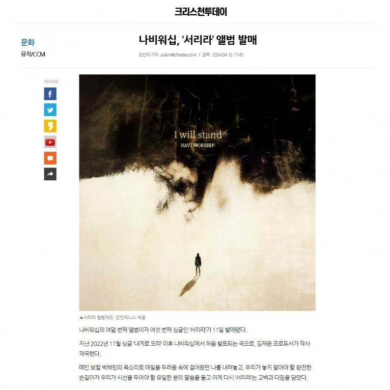 [기사] 나비워십, ‘서리라’ 앨범 발매(크리스천투데이)
