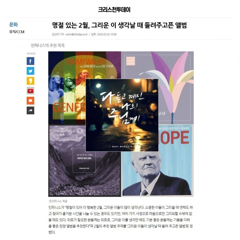 뮤직타임 [기획기사] 명절 있는 2월, 그리운 이 생각날 때 들려주고픈 앨범(크리스천투데이)