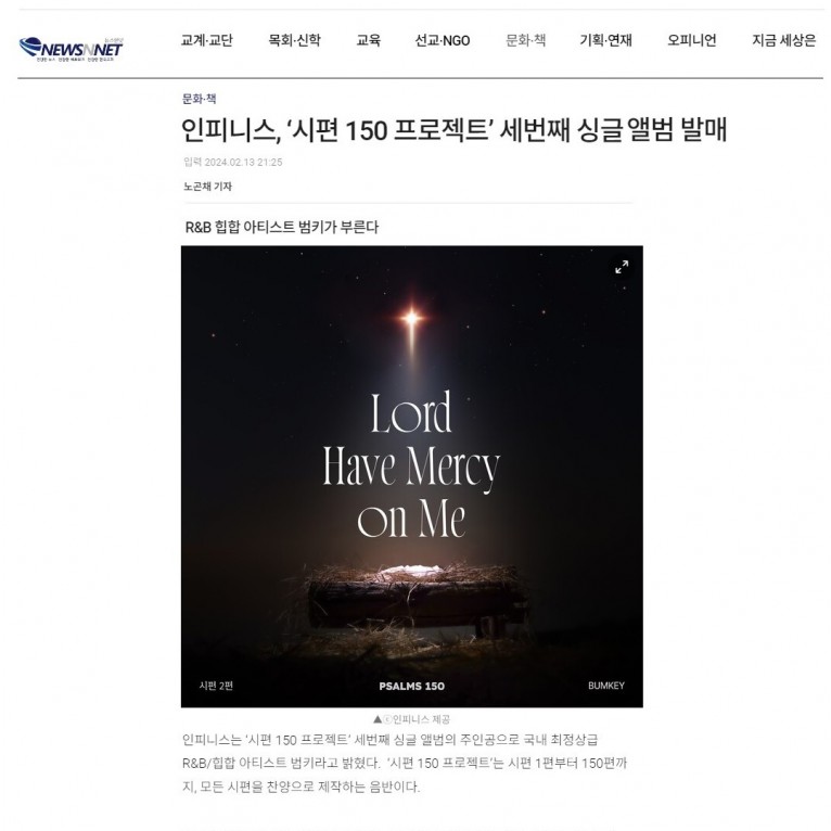 뮤직타임 [기사] ‘시편 150 프로젝트’ 세번째 싱글 앨범 발매(뉴스앤넷)
