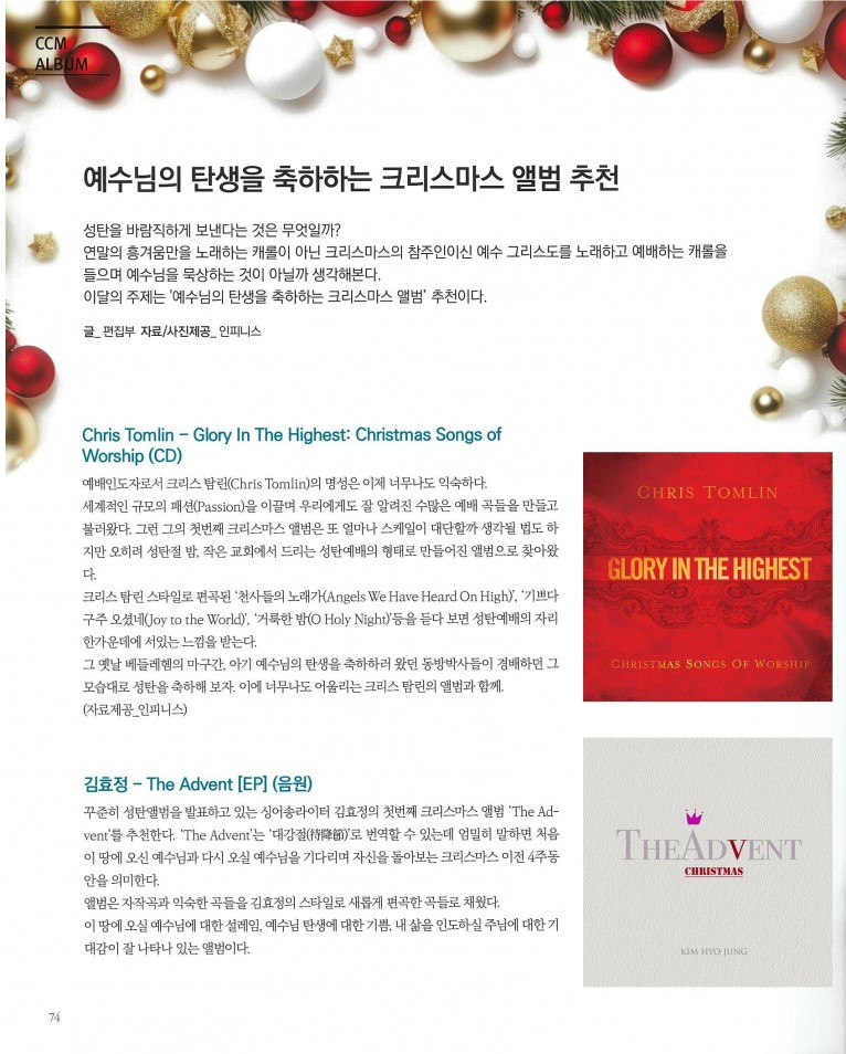 뮤직타임 [잡지] 예수님의 탄생을 축하하는 크리스마스 앨범 추천(월간 Church Media 12월호)