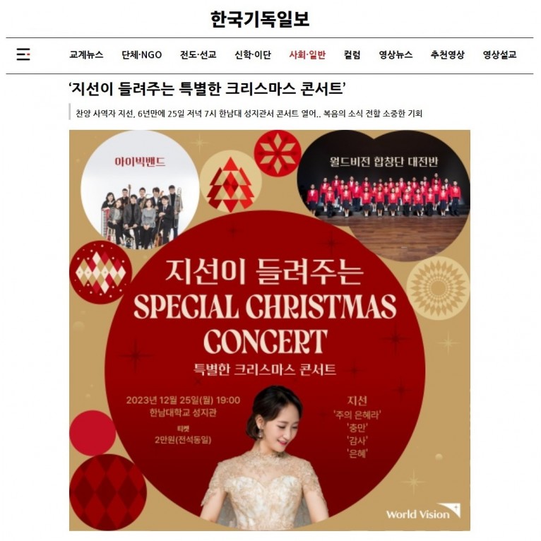 [기사] ‘지선이 들려주는 특별한 크리스마스 콘서트’(한국기독일보)