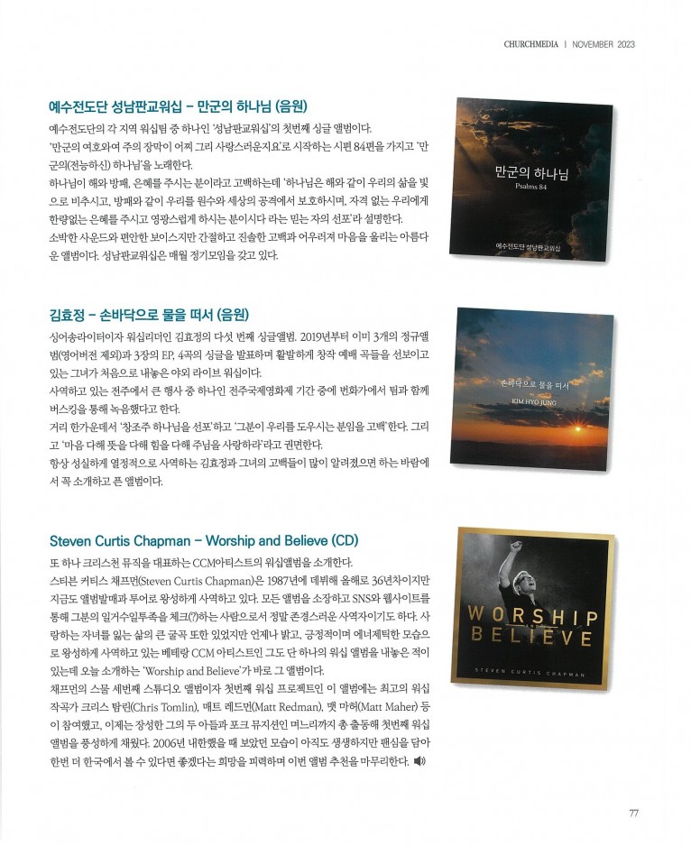 뮤직타임 [잡지] 'Worship in Autumn' 가을에 듣는 워십 앨범 추천(월간 Church Media 11월호)