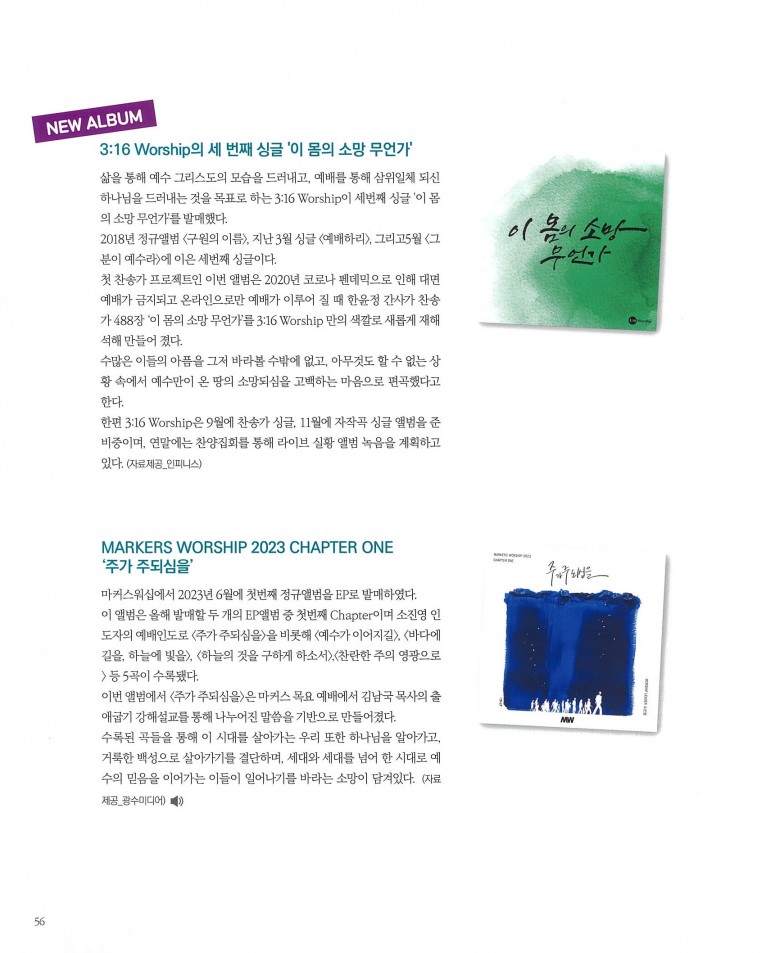[잡지] 3:16 Worship의 세 번째 싱글 '이 몸의 소망 무언가'(월간 Church Media 8월호)