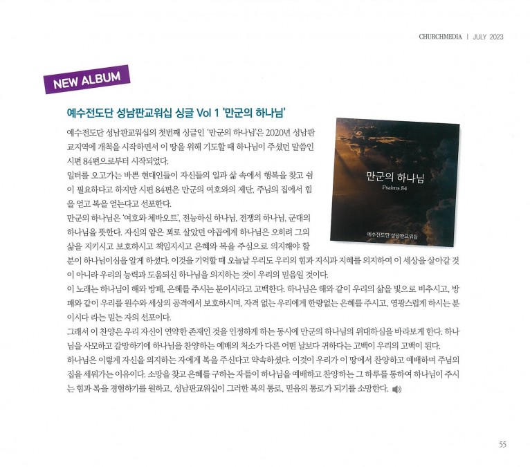 뮤직타임 [잡지] 예수전도단 성남판교워십 싱글 Vol 1 '만군의 하나님'(월간 Church Media 7월호)