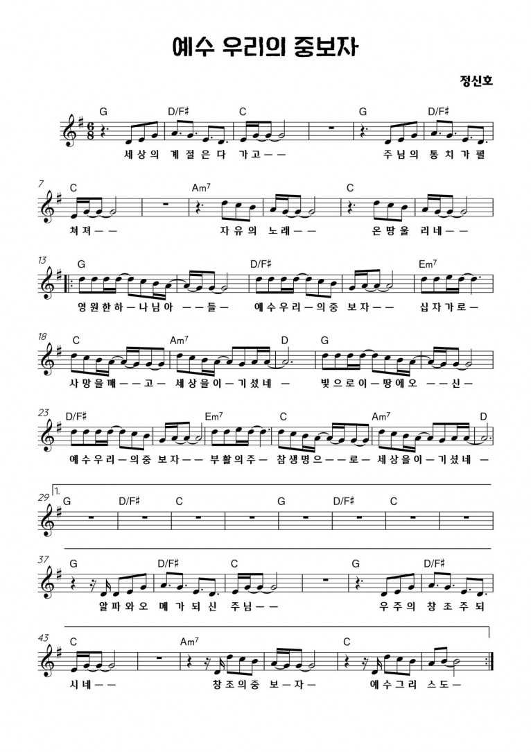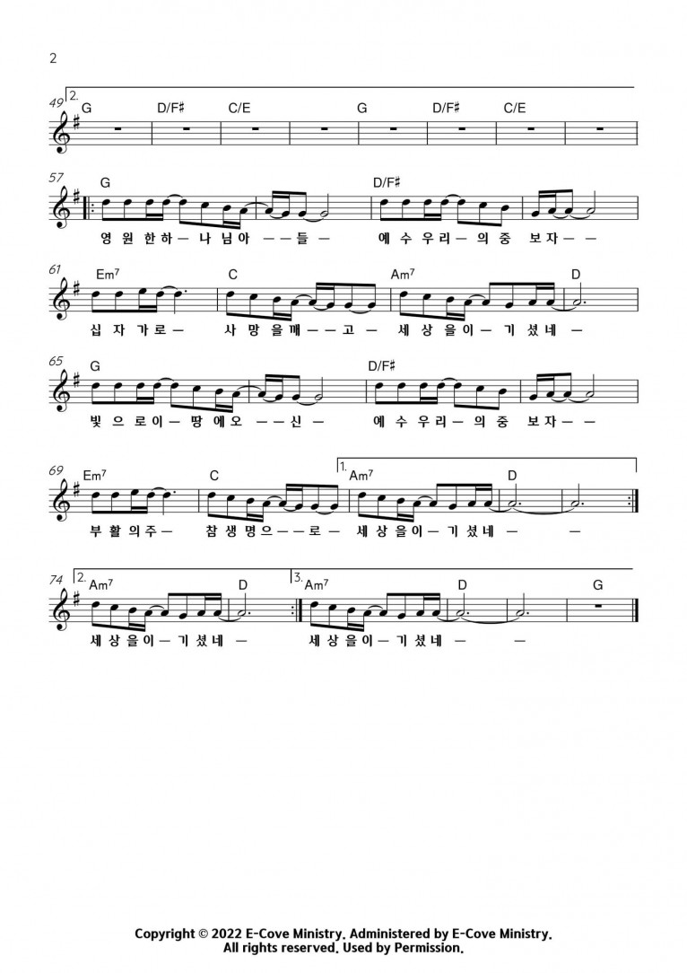 뮤직타임 [악보] 예수 우리의 중보자 (feat. 김종현, 이승재, 한재윤) - E-Cove Ministry (이커브미니스트리)