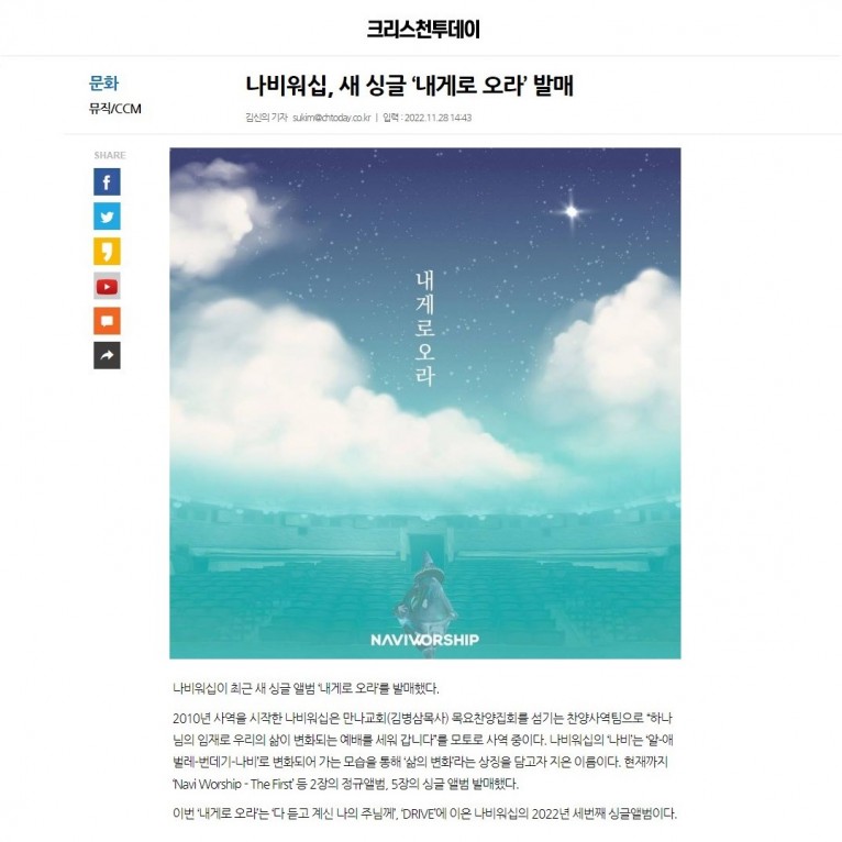 뮤직타임 [기사] 나비워십, 새 싱글 ‘내게로 오라’ 발매