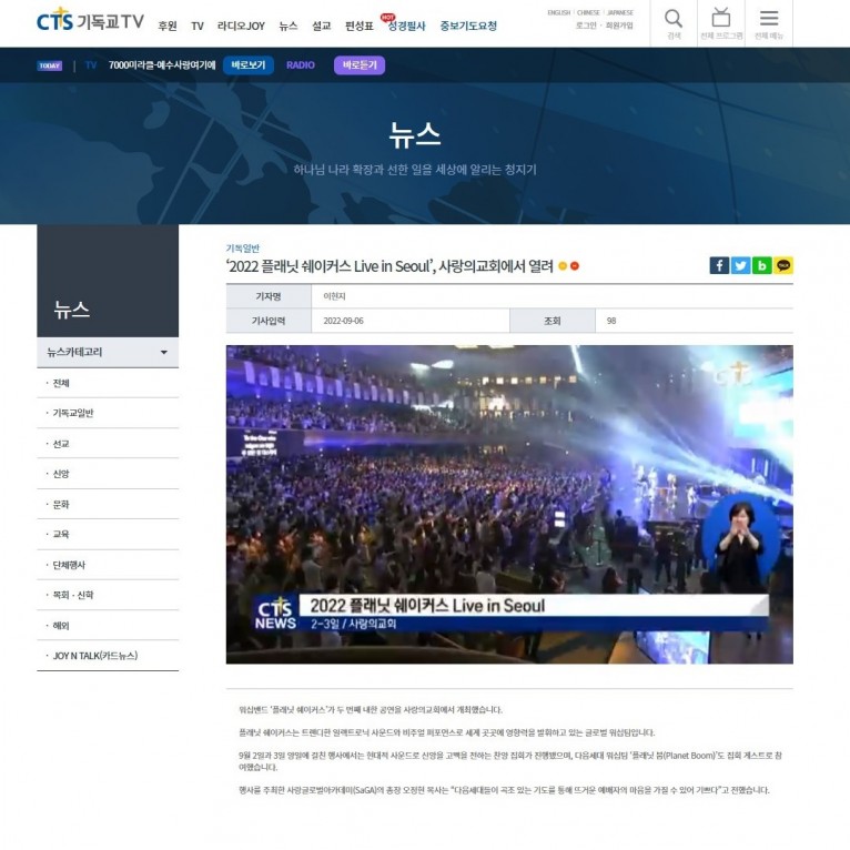 [보도] ‘2022 플래닛쉐이커스 Live in Seoul’, 사랑의교회에서 열려