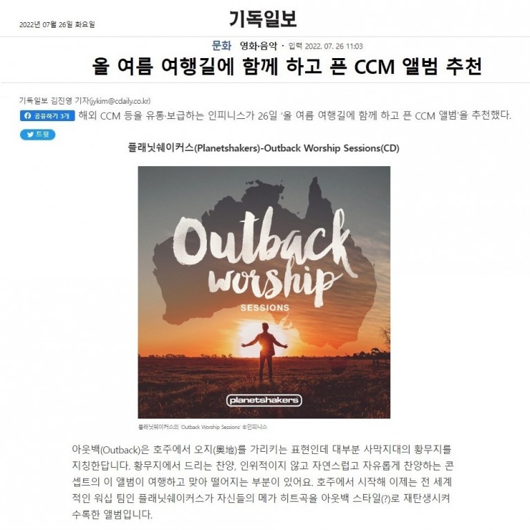 [기사] 올 여름 여행길에 함께 하고 픈 CCM 앨범 추천