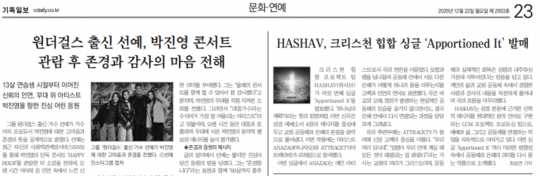 [기사] HASHAV, 크리스천 힙합 싱글 ‘Apportioned It’ 발매(기독일보)