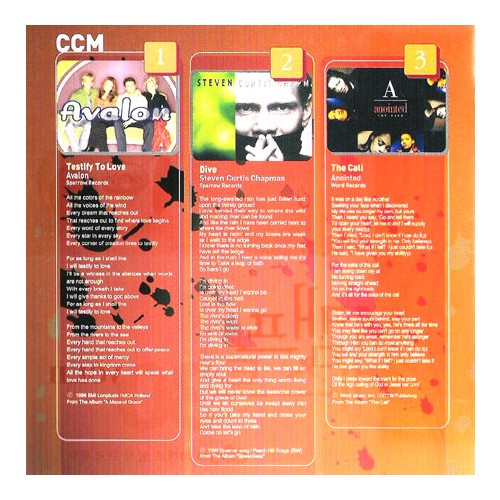 Testify To Love / Avalon 영 메시야 (Young Messiah) 투어를 위해 결성 되었다가 96년부터 정규 활동을 시작한 남녀 혼성 보컬그룹 아발론의 두번째 앨범에 수록되었던 노래. 첫 앨범에서 그다지 큰 반응을 얻지 못했던 아발론이었지만 이 곡을 통해 혼성 보컬 그룹 장르의 기린아로 떠올랐다. 여러차례의 멤버교체가 있지만 아직도 창팀이후 10년째 든든하게 활동을 이어가고 있다. 국내에서는 한국 컨티넨탈 싱어즈에 의해서 "주의 사랑 전하리"라는 제목으로 번안되었고, 이 번안곡 덕분에 아발론은 국내에서도 잘 알려지게 되었다.
