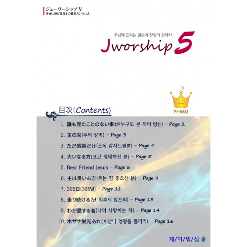 • Jworship 5집 - 주님께 드리는 일본의 찬양의 산제사 (한국어+일본어 병용) (악보)
